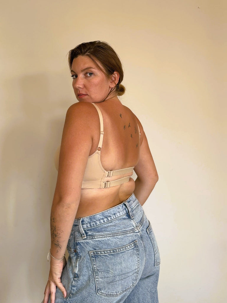 ✨ גב מתכוונן לחלוטין – תכנון חדשני ויחודי לנו! כל מידה מתאימה ל-4 מידות חזייה שונות.